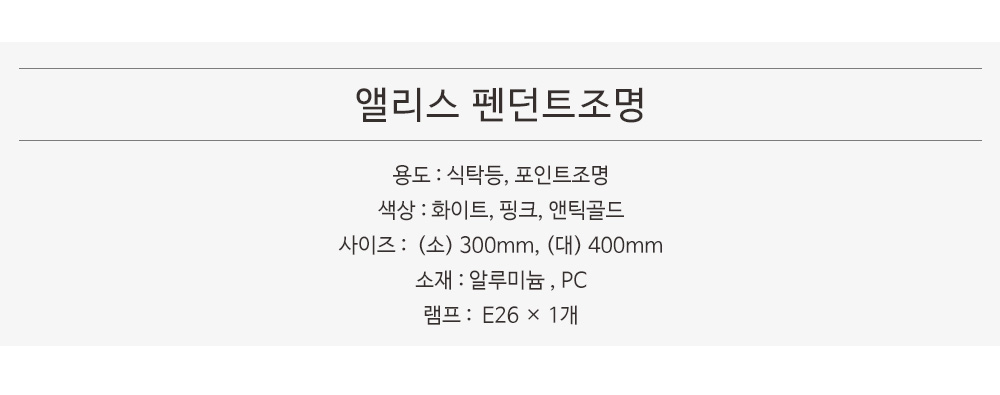 앨리스 1등 펜던트조명 식탁등 (해외배송 가능상품)
